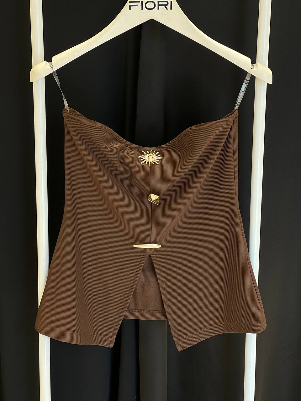 • Drapeli Güneş Aksesuarlı Straplez Bluz