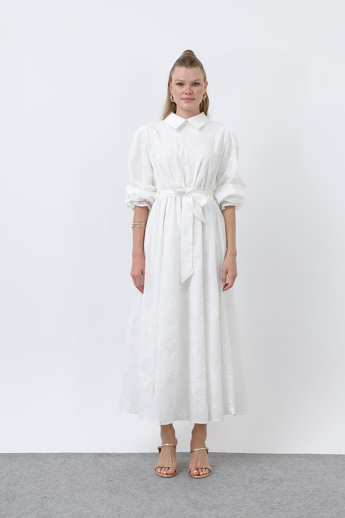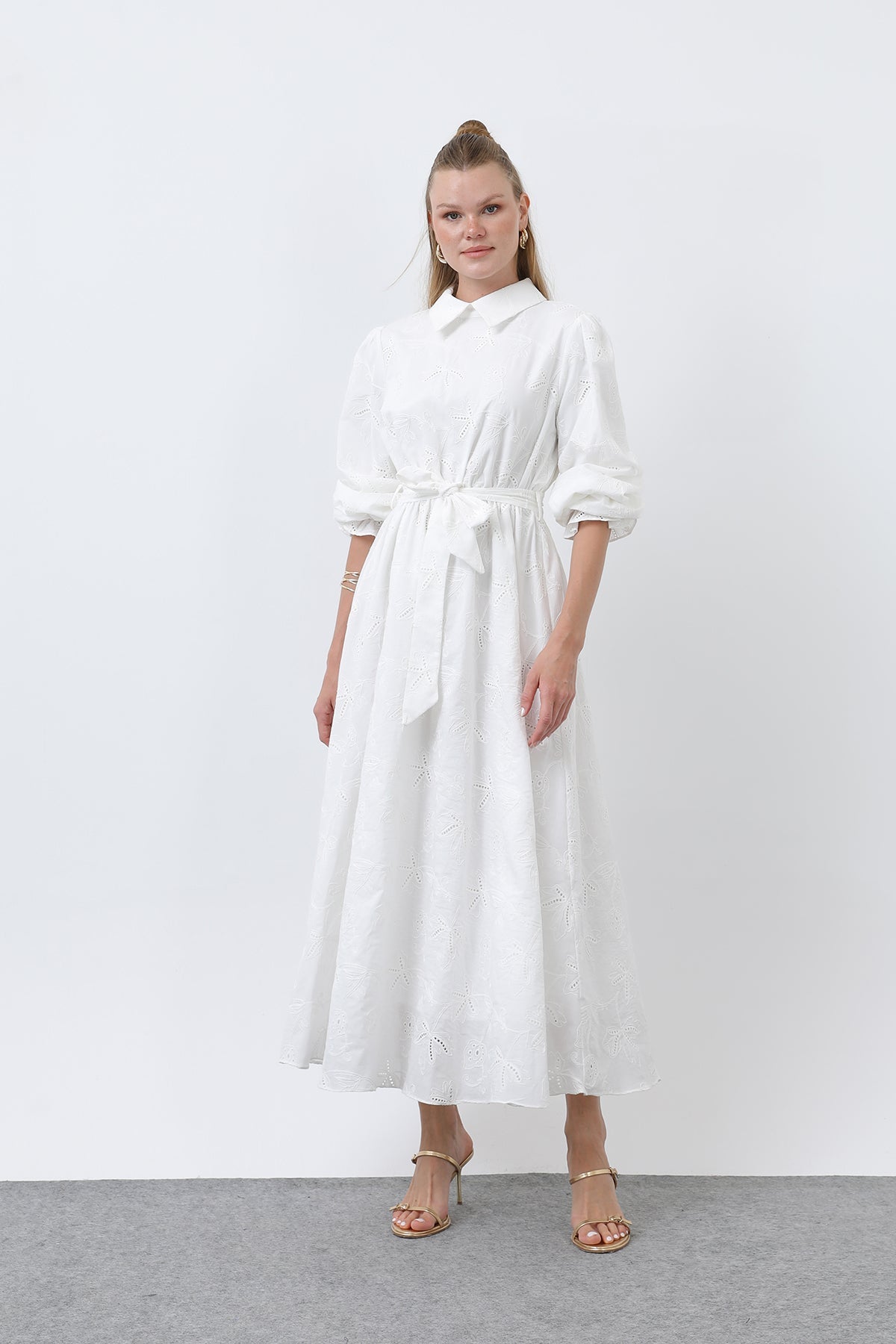 Pamuklu kumaşıyla nefes alabilir yapıdaki bu elbise, gömlek formu ve belindeki kuşak detayıyla rahatlıkla şıklığı birleştirir. Günlük kullanım için idealdir. Mevsim geçişlerinde tek başına veya ince ceketlerle kombinlenebilir.