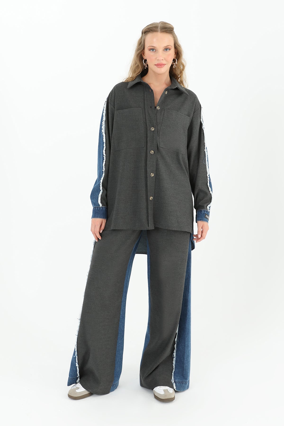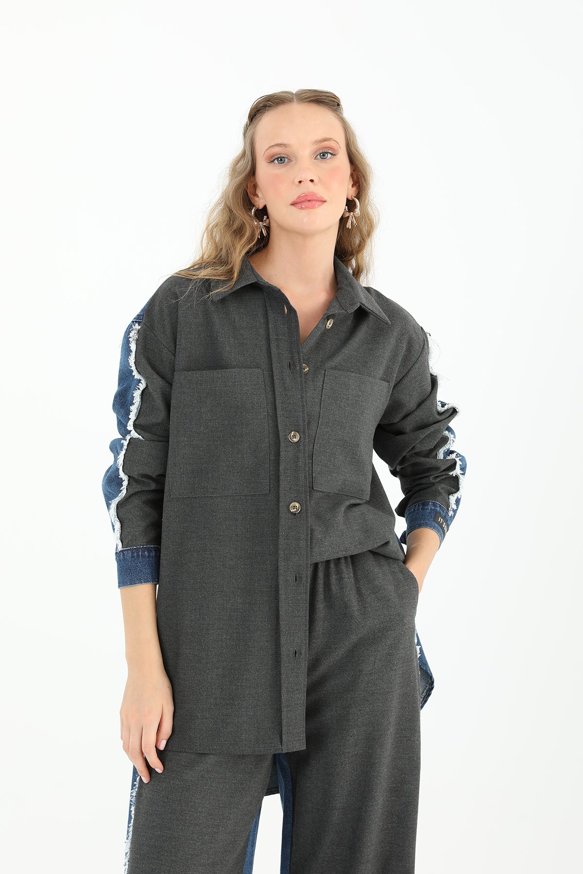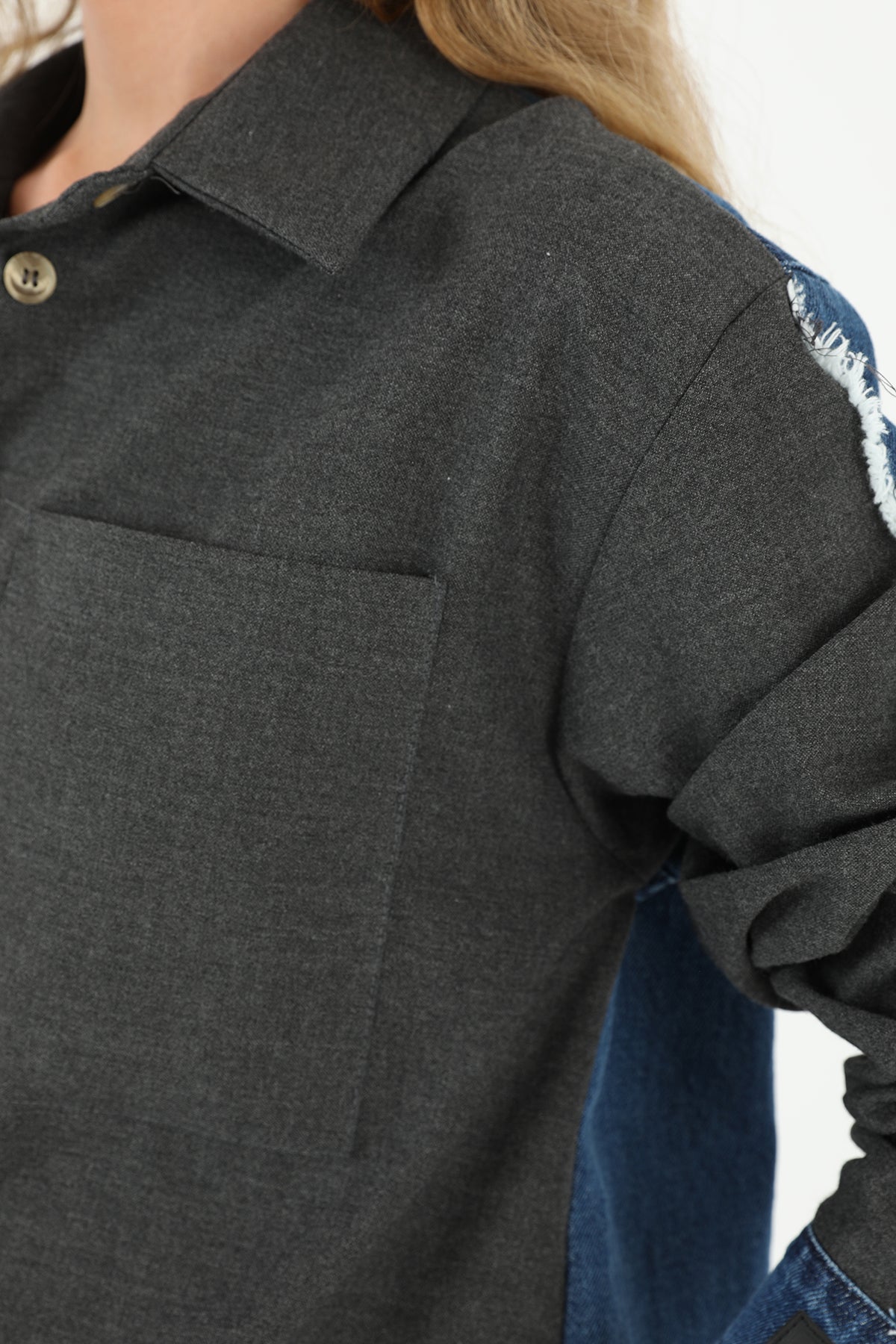 Kadın kolu kot detaylı geniş cepli gömlek, günlük kombinleriniz için ideal bir seçenektir. Kot detayları, gömleğe spor ve genç bir hava katarken, geniş cepli tasarımı ile pratiklik sunar. Yumuşak kumaşı ve rahat kesimi ile konforlu bir kullanım sağlar. Hem etek hem de pantolon kombinlerinde şık bir tamamlayıcı olarak tercih edilebilecek bu gömlek, stil sahibi kadınların favorisi olacak.