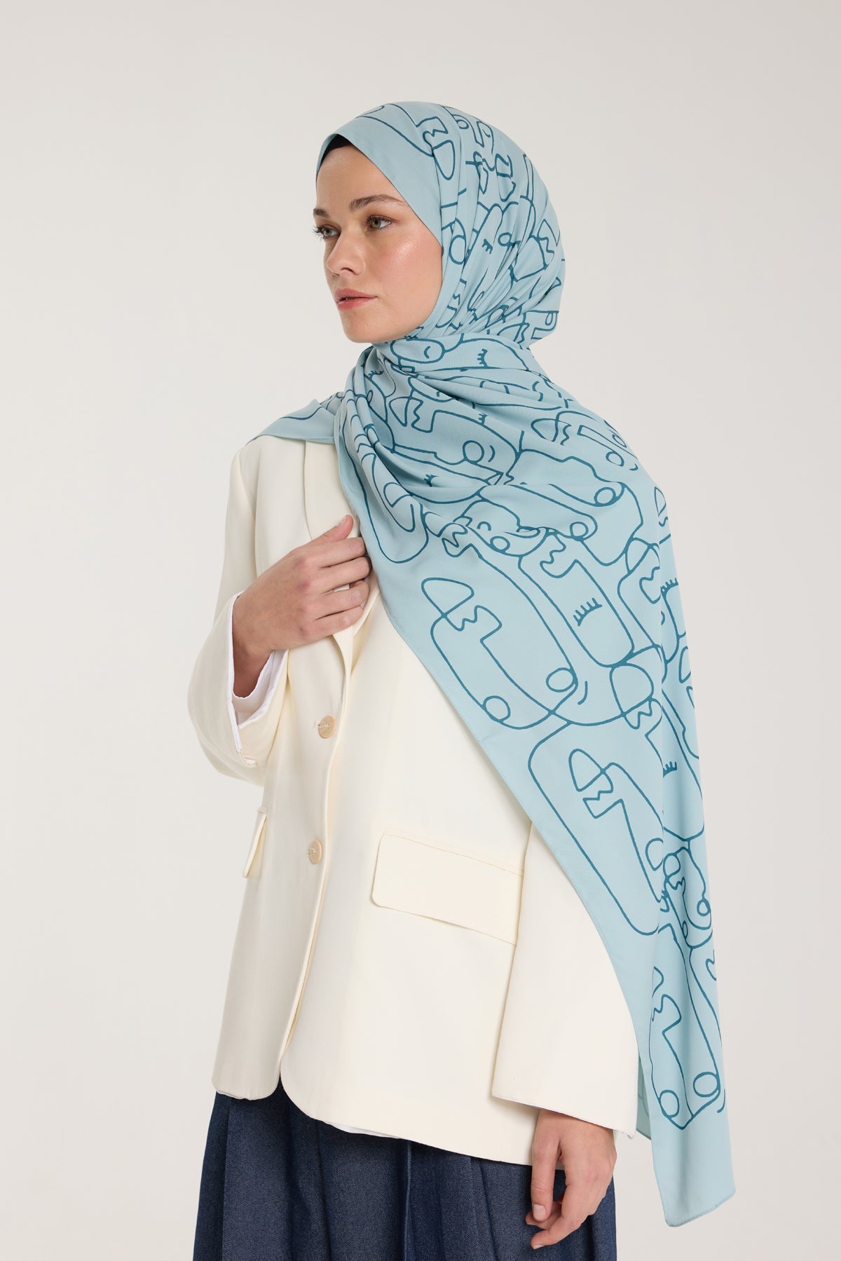 Pure Tone Şal - Marjinal Desen - Su Yeşili - Yeşil
