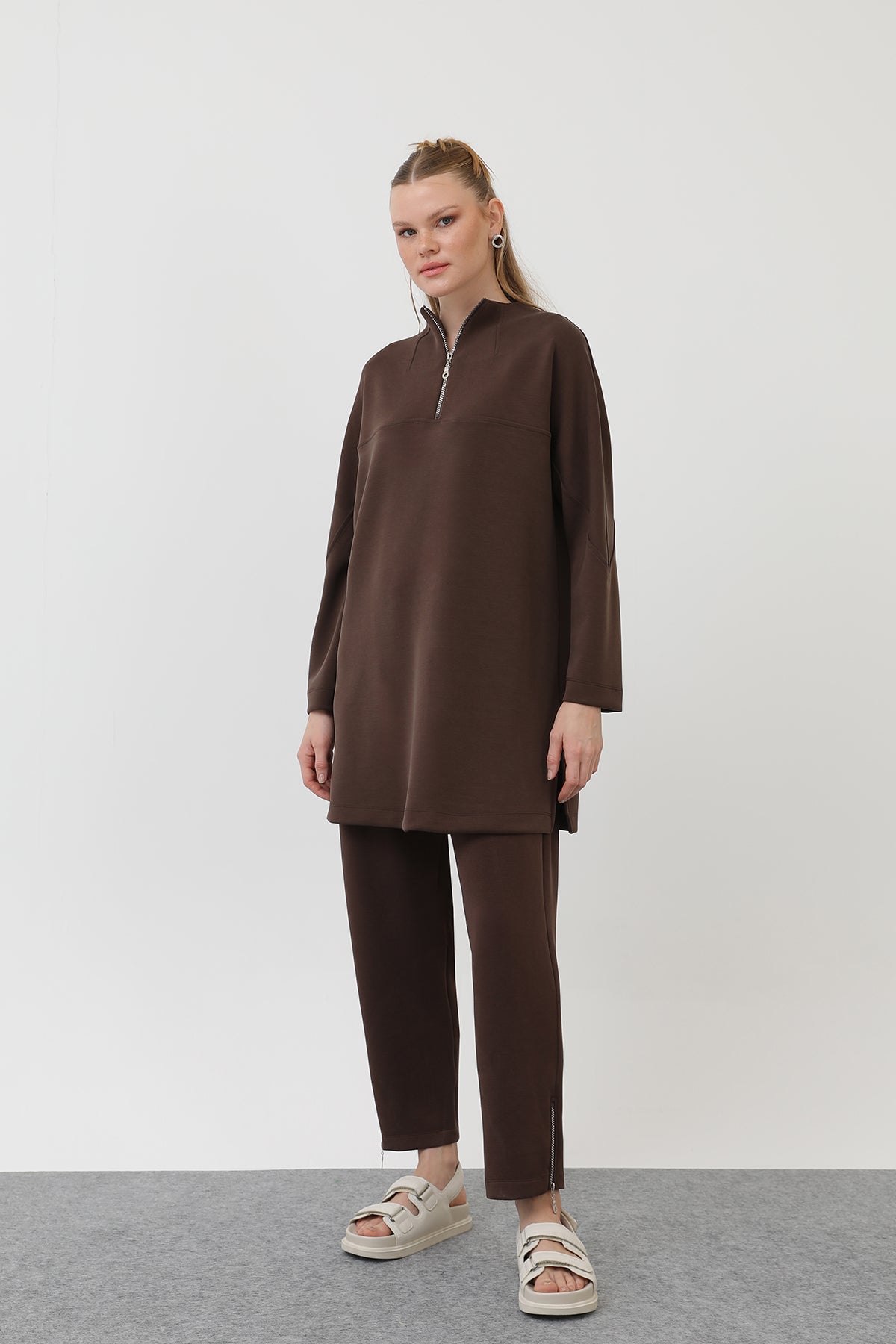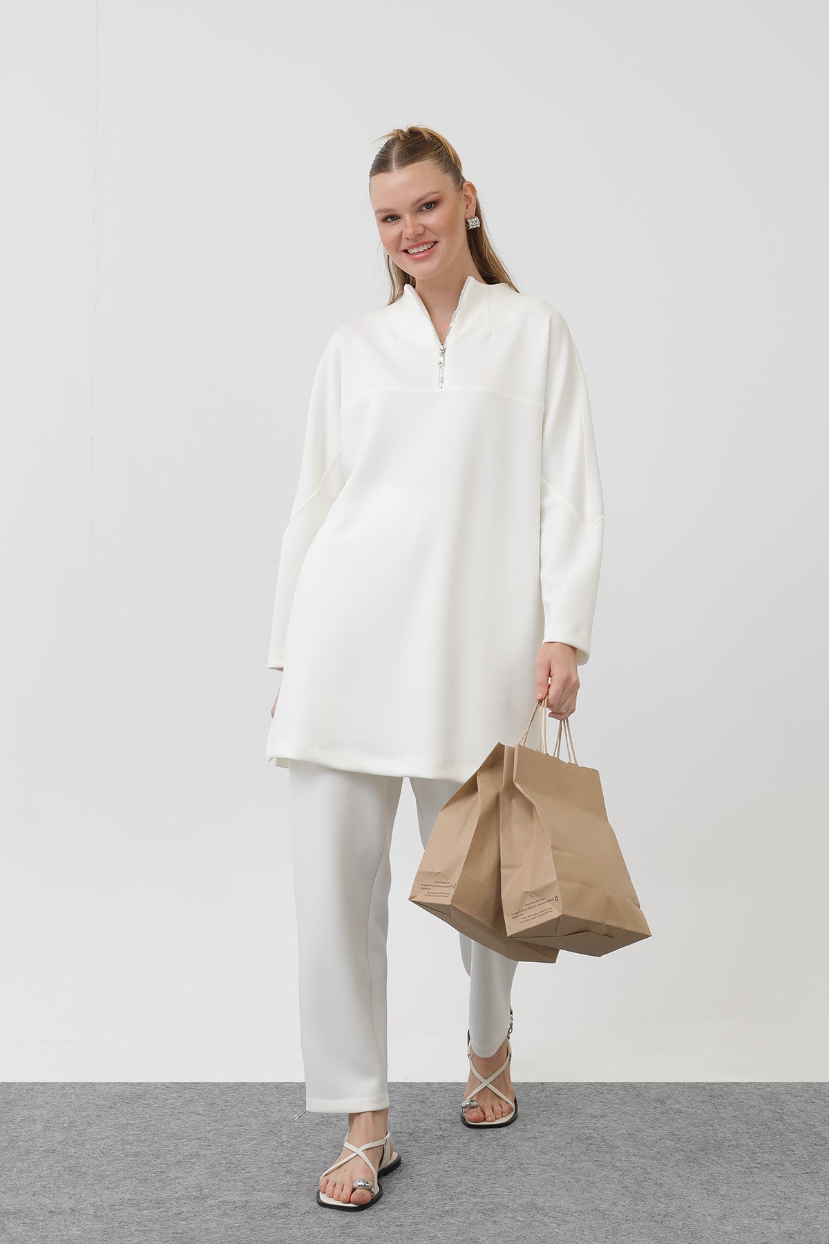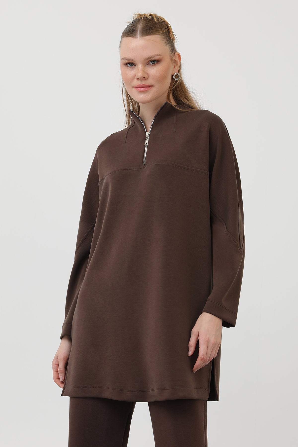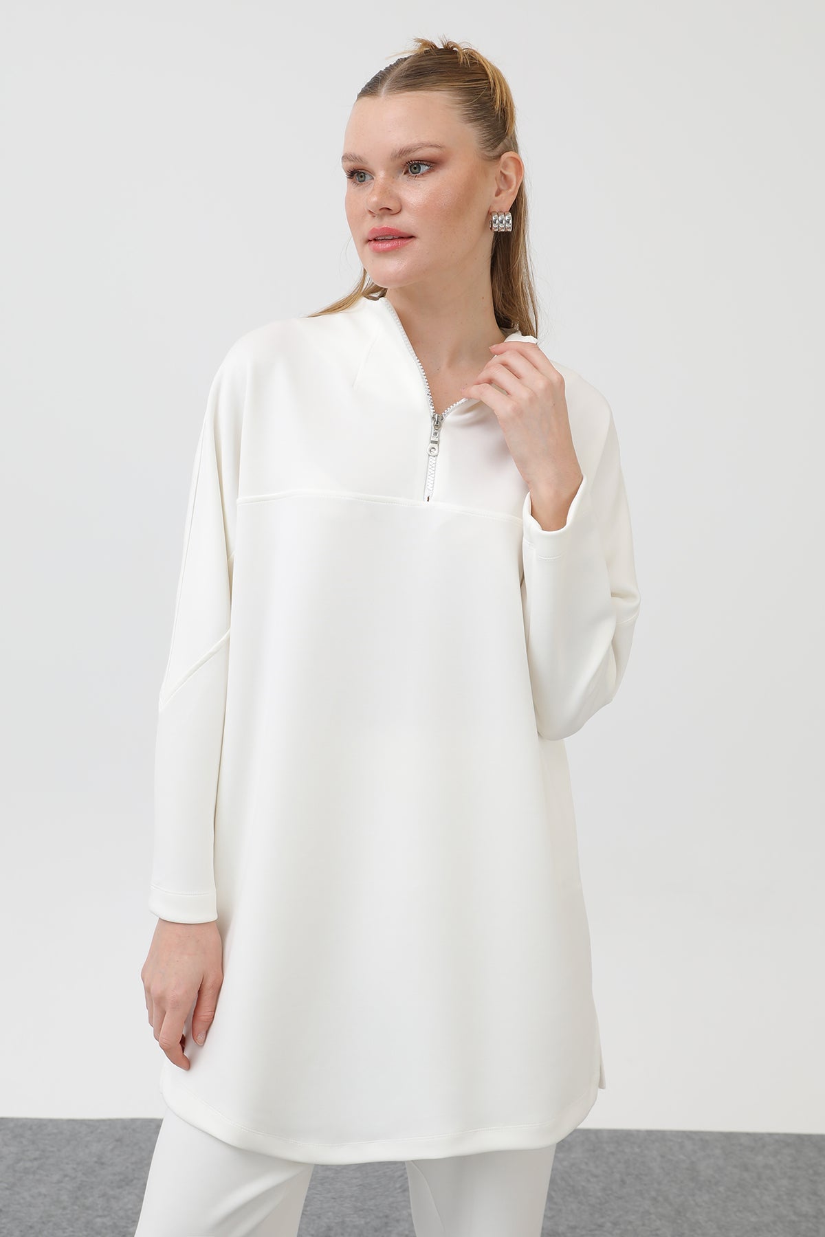 Dinamik ve modern bir görünüm arayan kadınlar için tasarlanan tunik, sportif şıklığın anahtarı! Ön kısmındaki fermuar detayı pratik kullanım sağlarken, kapüşon tasarımıyla gün boyu rahatlık sunar. Yumuşak dokusuyla günlük kombinlerinize konfor katan bu tunik, hem spor hem de casual tarzınıza uyum sağlar. Her mevsimde stil sahibi olmak isteyenlerin vazgeçilmezi olacak!