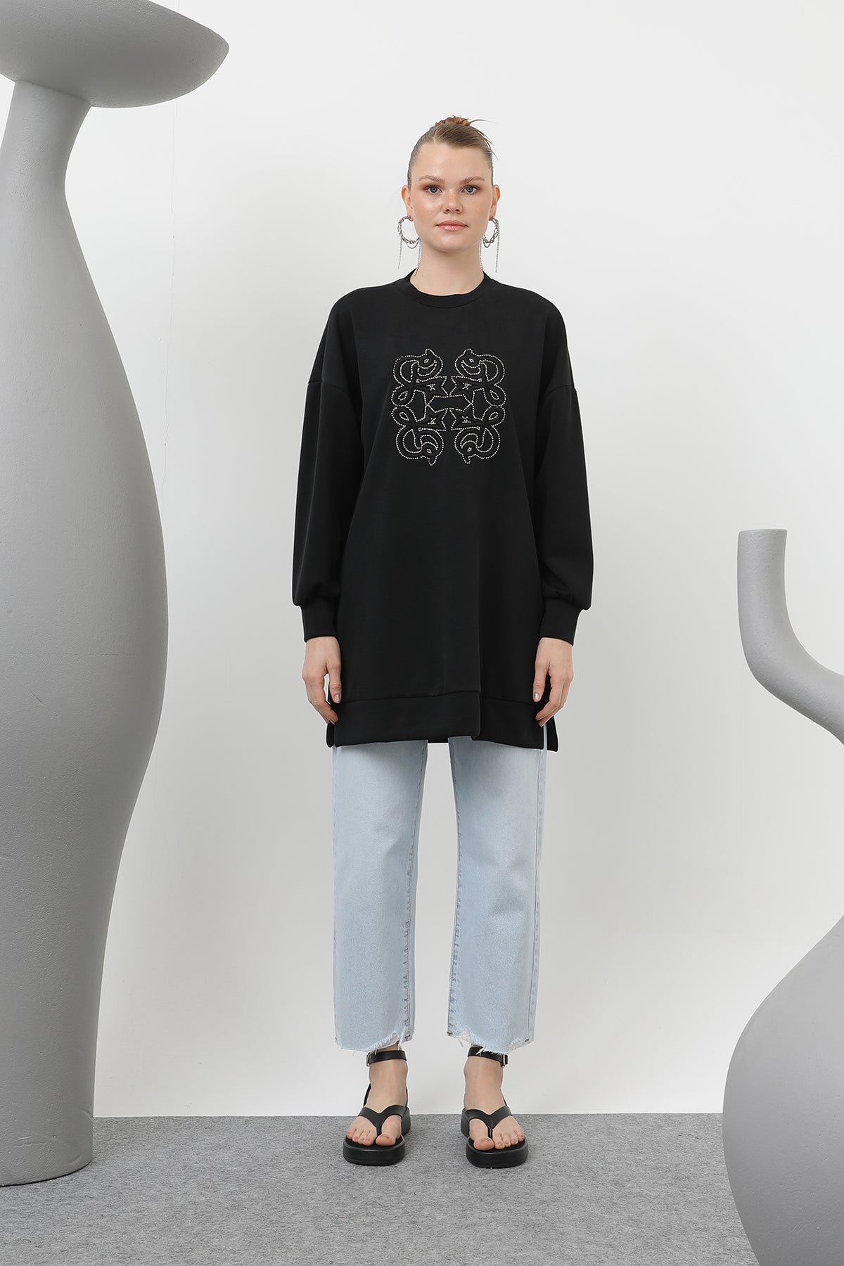 Işıltıyı tarzınızla birleştiren Kadın Önü Yapıştırma Taş Detaylı Tunik, zarif taş detaylarıyla göz kamaştırıyor. Özel günlerinizde veya günlük kombinlerinizde rahatlıkla tercih edebileceğiniz bu tasarım, hem şıklığı hem de konforu bir arada sunar. Yumuşak dokusu ve kaliteli işçiliğiyle fark yaratan tunik, stilinize ince bir ışıltı katmak için mükemmel bir seçim!