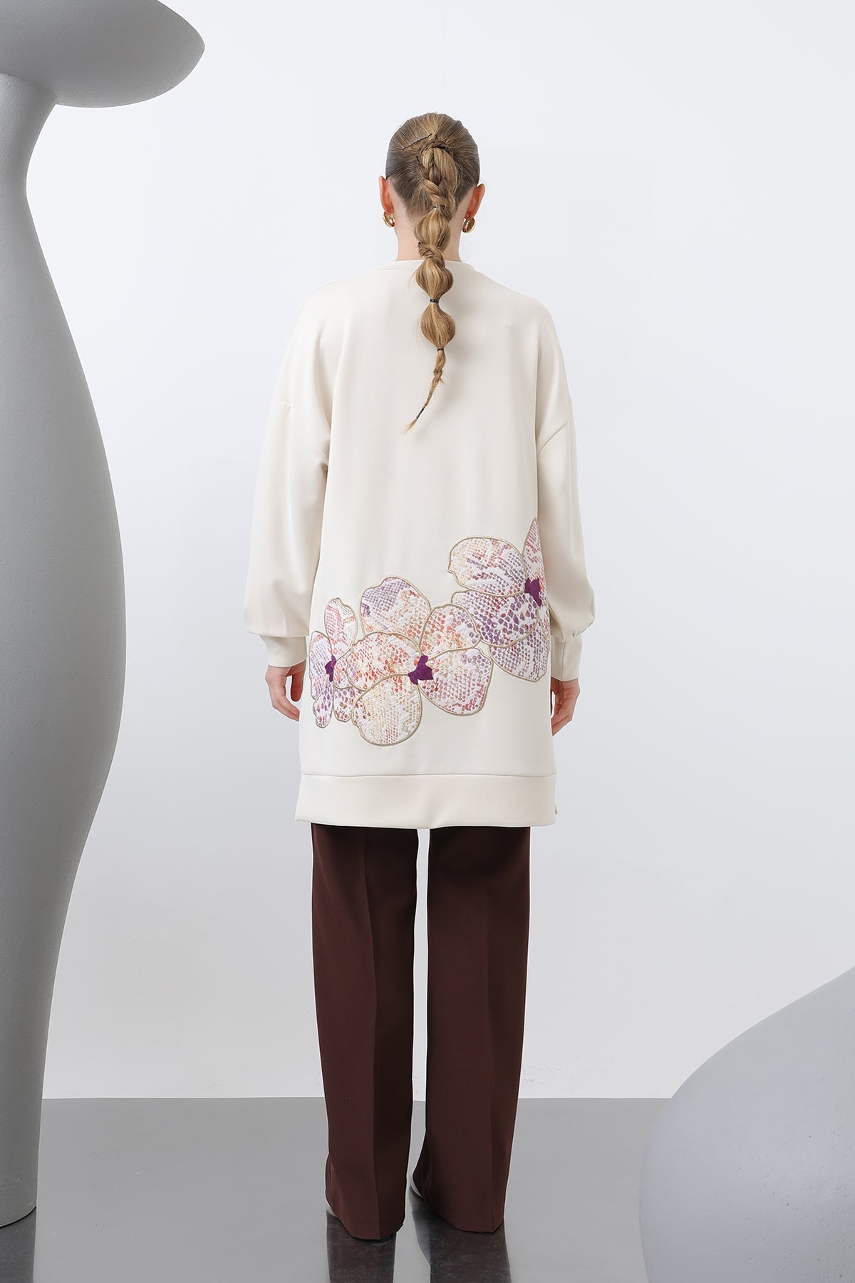 Nakış ve garnili tasarımıyla fark yaratan bu tunik, önden arkaya devam eden detaylarıyla şık bir görünüm sunuyor. Modern kesimi sayesinde farklı tarzlarla kolayca kombinlenebilir.